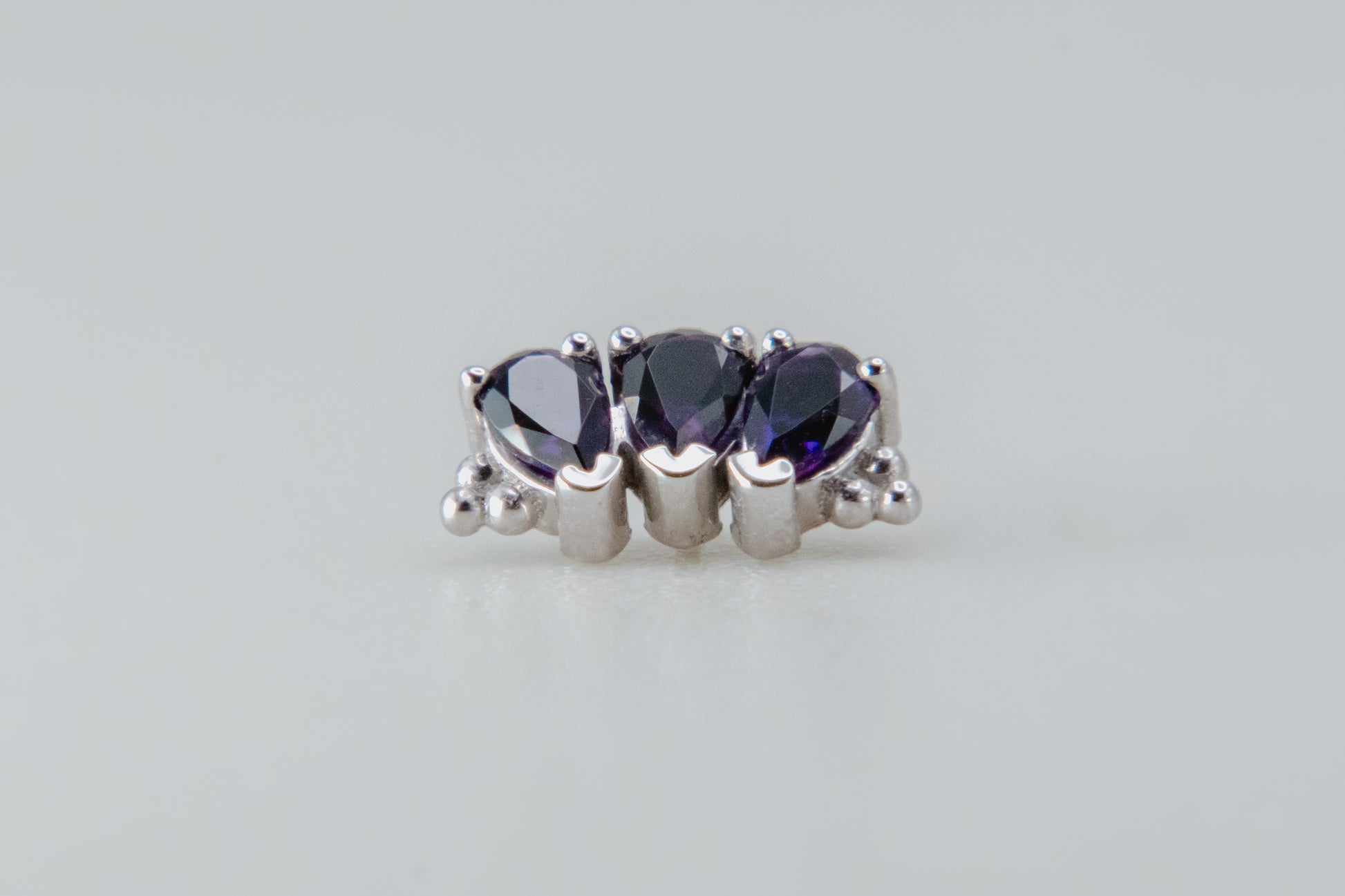 - Gemstone: (3) 4mm x 2.5mm Amethysts (Pear Cut)