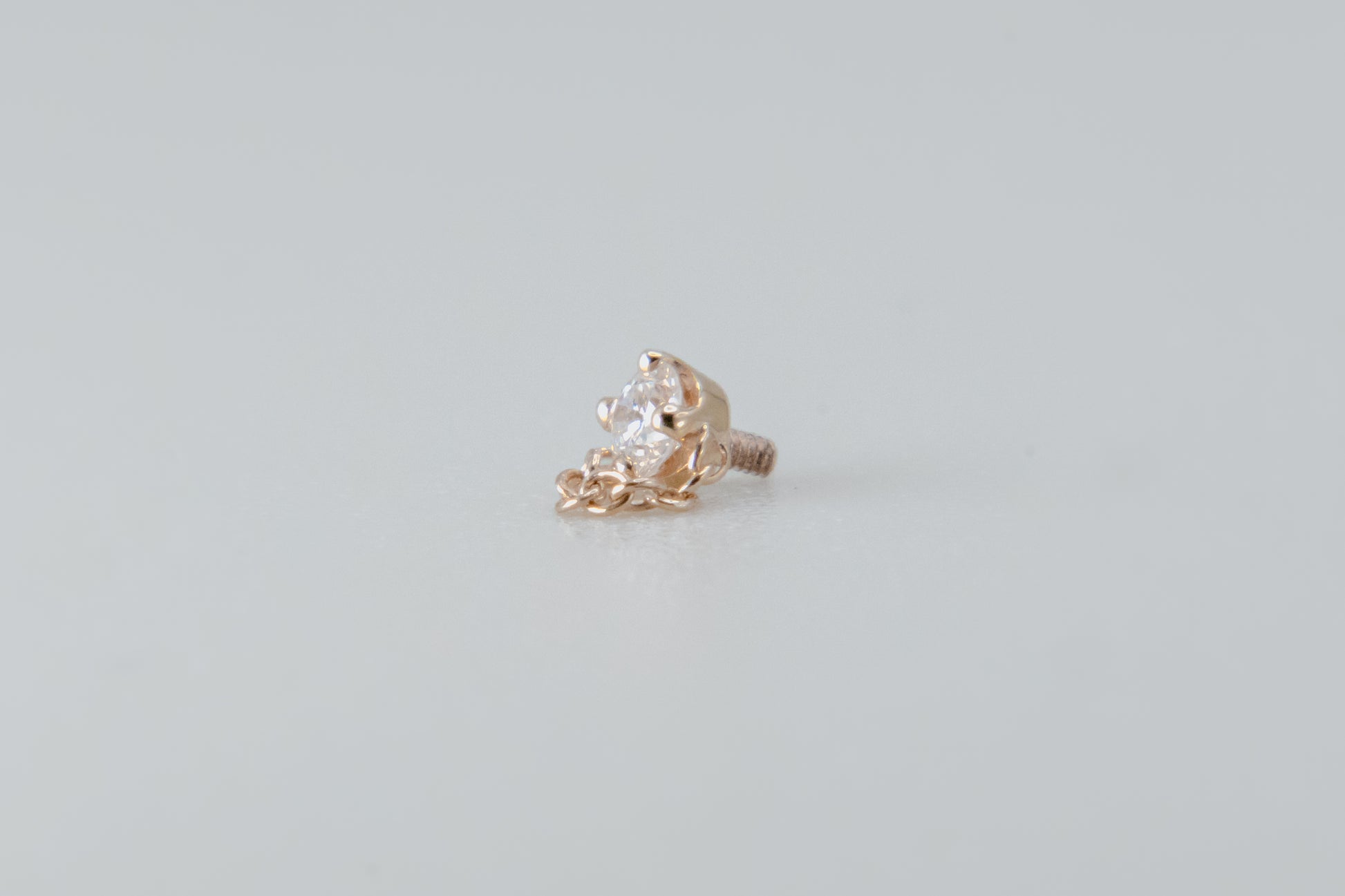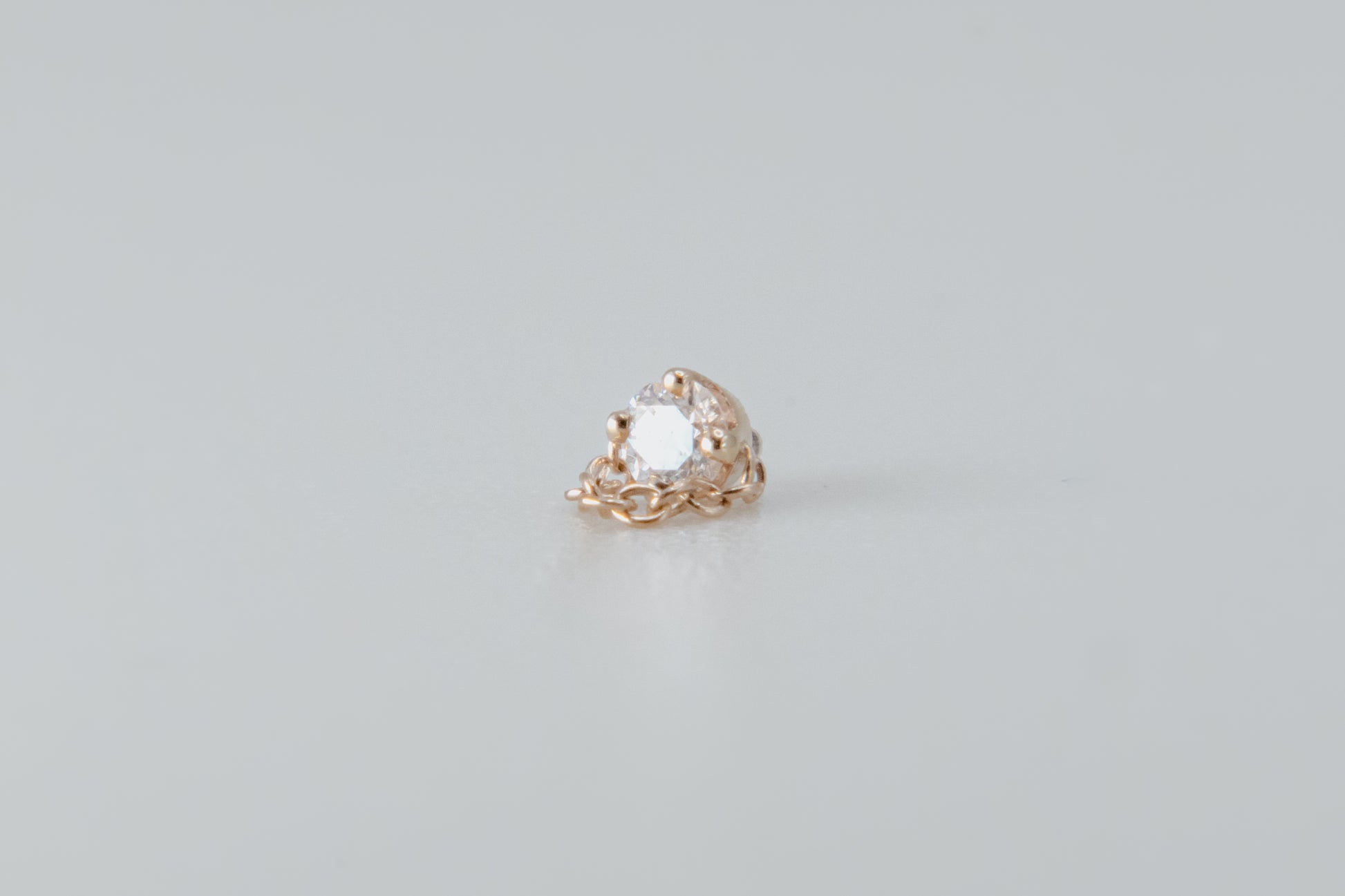- Design: Round four-prong setting with 1mm cable chain attached