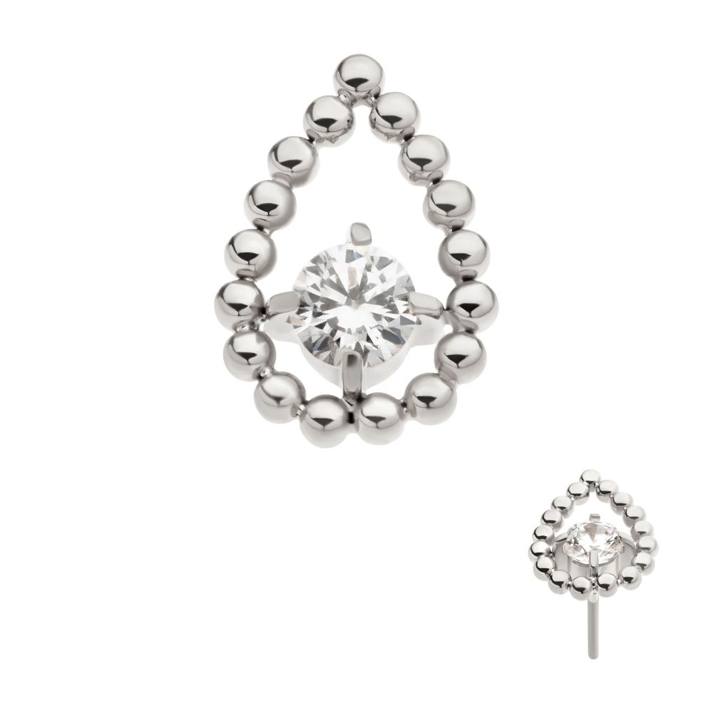 Our Titanium Hollow Teardrop offers a stunning combination of elegance and safety. Crafted from implant-grade titanium (Ti-6AL-4V ELI ASTM F136), this beautifully shaped teardrop design features prong-set Cubic Zirconia gemstones for a delicate yet eye-catching look.