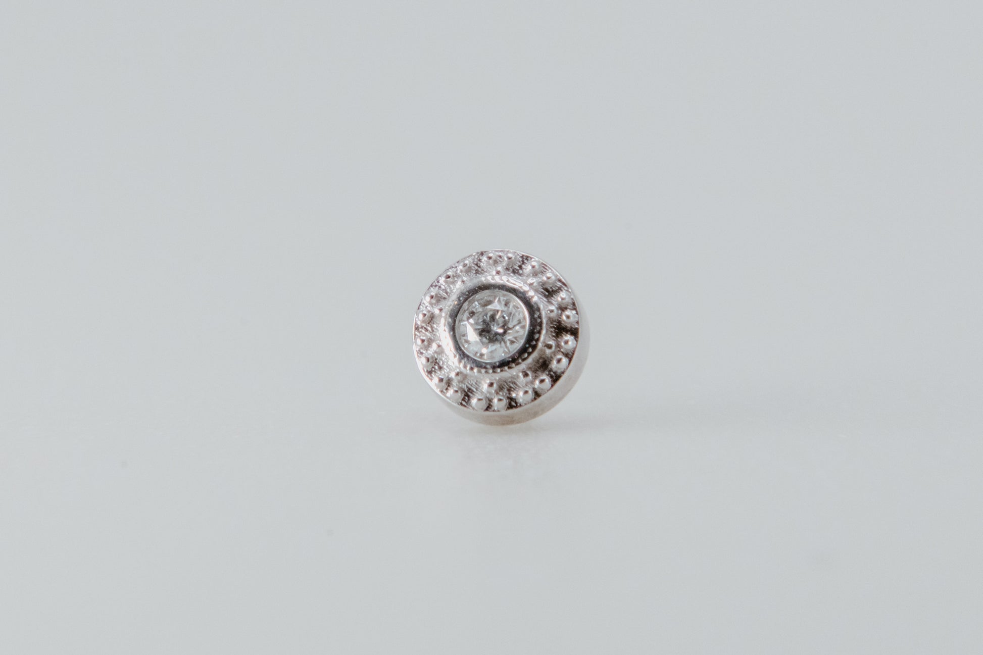 BVLA Tiny Nanda with VS Diamond – A timeless blend of elegance and craftsmanship. This 5mm beaded bezel showcases a dazzling 2mm VS diamond, offering a refined sparkle perfect for any piercing. Handcrafted in solid gold, it's a must-have for jewelry lovers who appreciate luxury in the details.